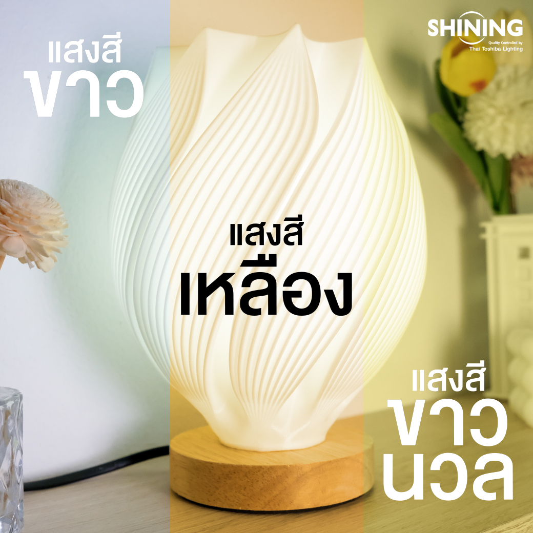 และเรายังเลือกหลอดไฟแสงไหนก็ได้มาใส่กับโคมเปล่า ไม่ว่าจะเป็น แสงสีขาว, แสงสีเหลือง, แสงสีขาวนวล