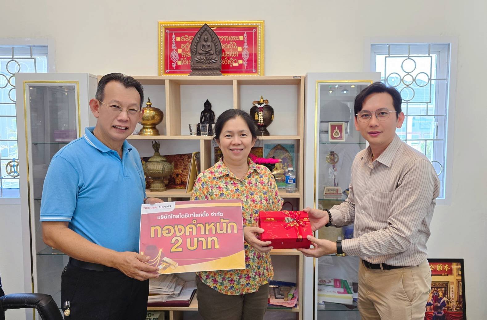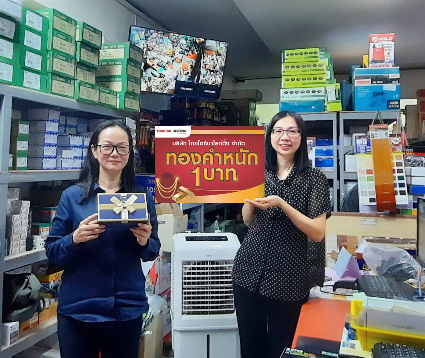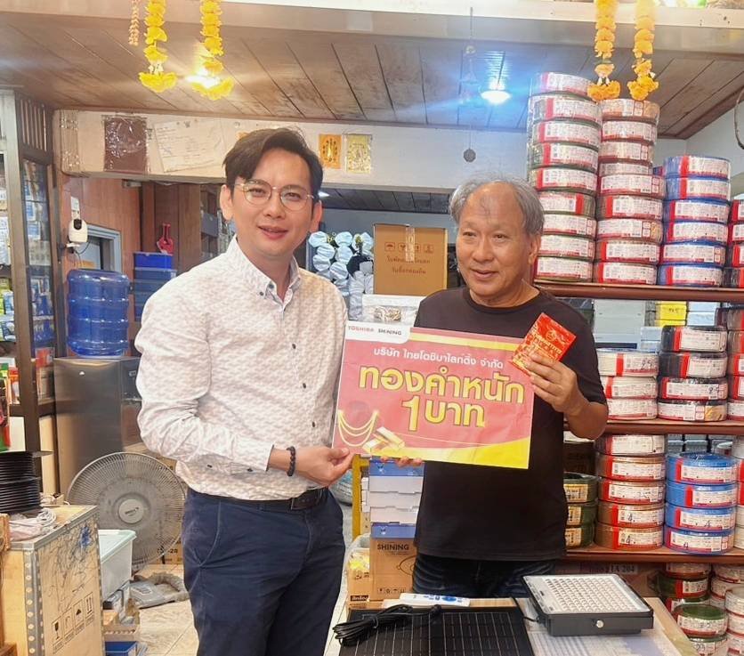 ตัวแทนจาก บริษัท ไทยโตชิบาไลท์ติ้ง จำกัด ได้ทำการมอบทองคำให้กับร้านค้าตัวแทนจำหน่าย เพื่อเป็นการตอกย้ำถึงความมุ่งมั่นของบริษัท ฯ ในการสนับสนุนพันธมิตรทางธุรกิจให้เติบโตไปด้วยกันอย่างมั่นคง แม้ภาวะตลาดจะมีการเปลี่ยนแปลง บริษัท ฯ ยังคงยึดมั่นในคำสัญญาและเงื่อนไขที่ให้ไว้กับคู่ค้าอย่างแน่วแน่
