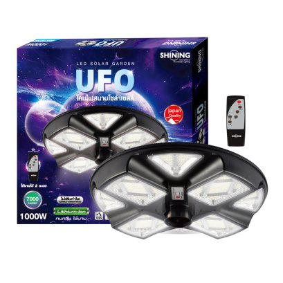 LED Solar Garden UFO 1000W, 6500K white light brightly illuminates the entire area with advanced technology and convenient remote control, providing enhanced comfort and safety at all times.