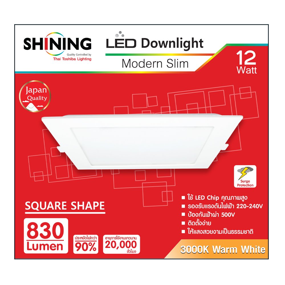 LED Downlight Modern Slim SQ 12W Warm White