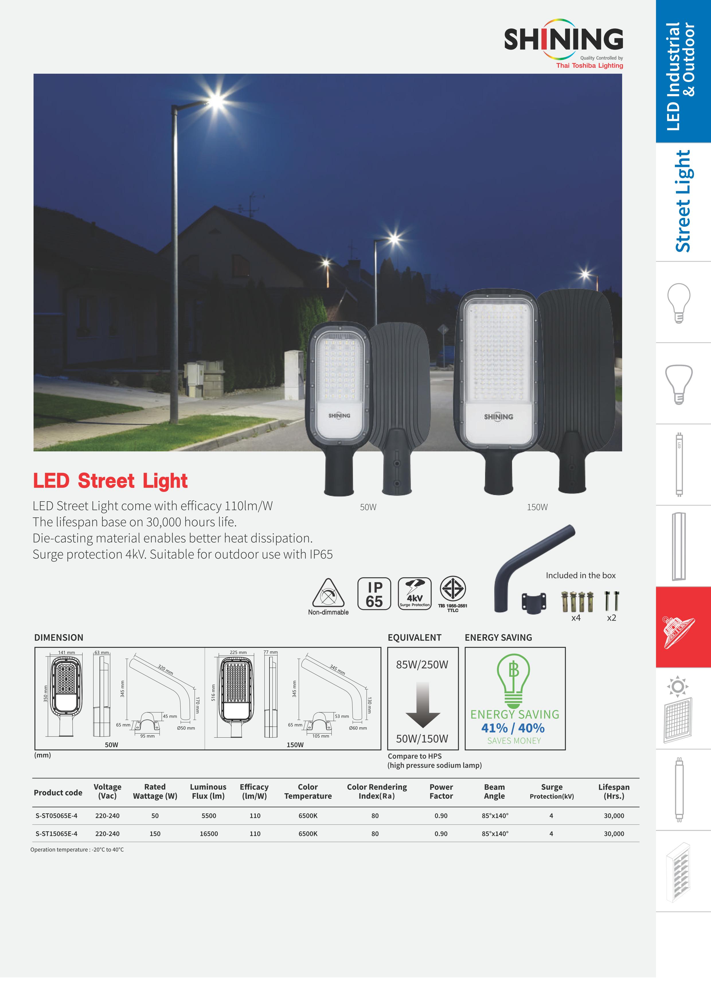 Categories : SHINING ,  New Products ,  LED Industrial & Outdoor ,  LED Street Light ,  Water & Dust Protection (IP Rating) ,  IP65 ,