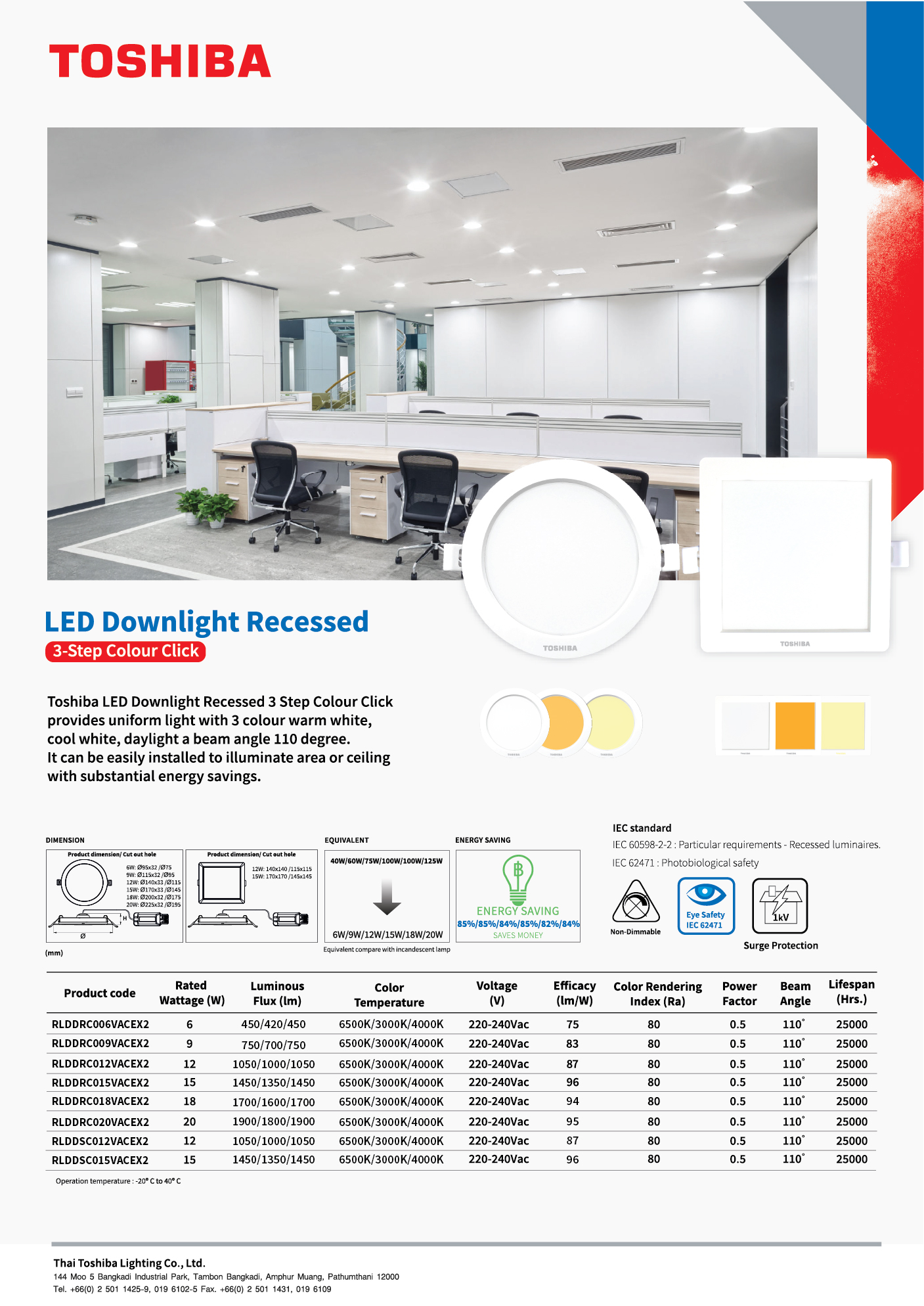 หมวดหมู่ : Toshiba ,  LED Downlight & Tracklight ,  LED Downlight ,