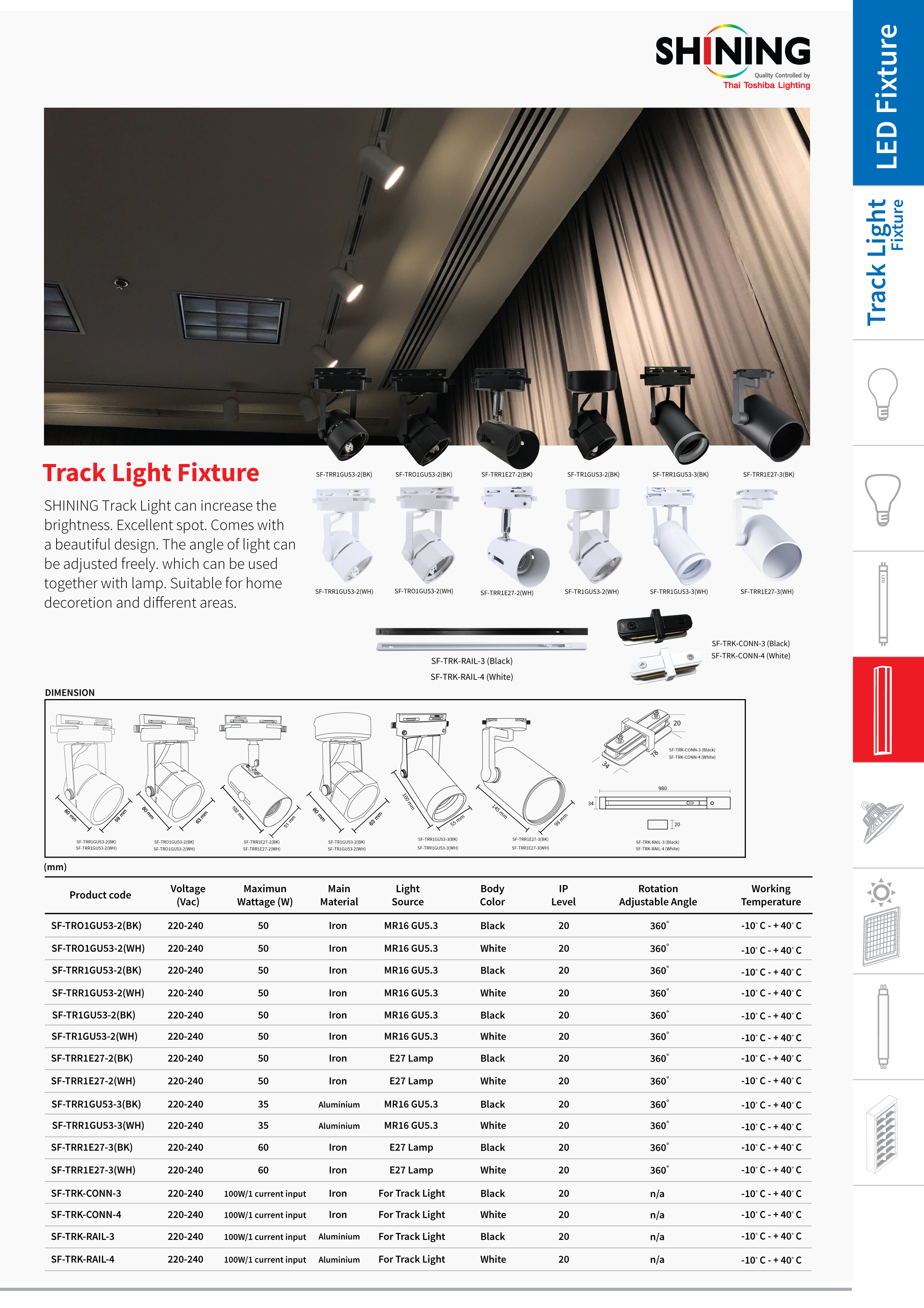 หมวดหมู่ : Shining ,  LED Downlight & Tracklight ,  LED Tracklight ,  Water & Dust Protection (IP Rating) ,  IP20 ,  Lamp Base ,  GU5.3 ,