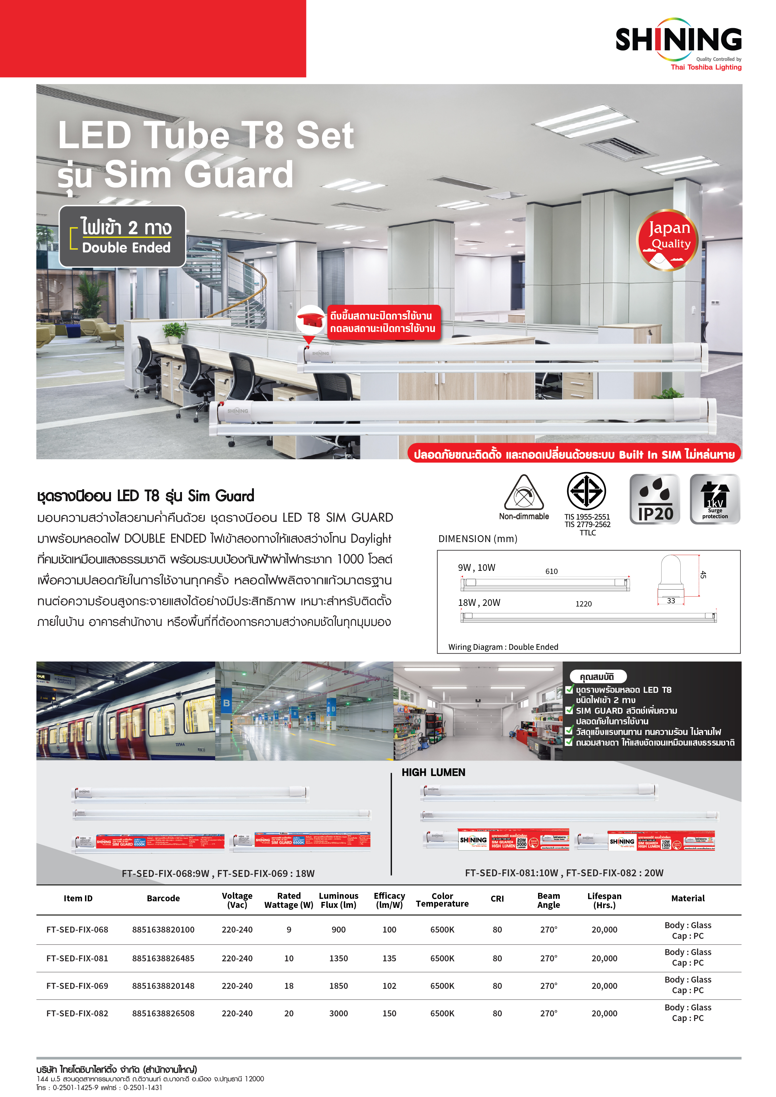 ปลอดภัยยิ่งขึ้นด้วย LED Tube Sim Guard ชุดรางแอลอีดีพร้อมใช้ ไฟเข้าสองทาง แสงขาว (Daylight)