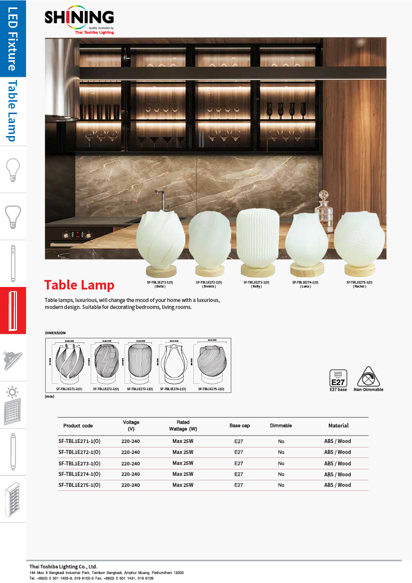 หมวดหมู่ : Shining ,  New Products ,  LED Table Lamps ,  Clearance Sale ,  Water & Dust Protection (IP Rating) ,  IP20 ,  Lamp Base ,  E27 ,