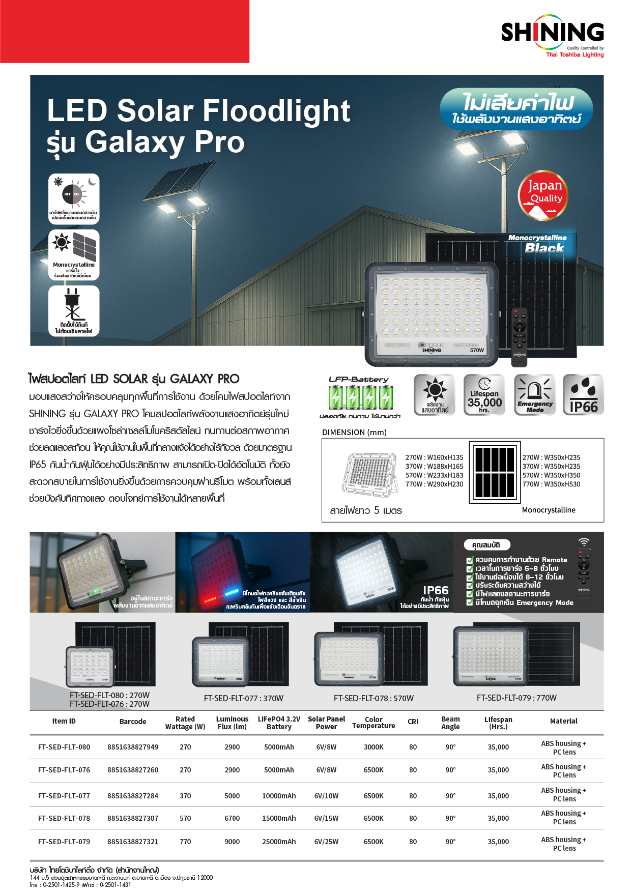 ส่องสว่างครอบคลุมพื้นที่ได้อย่างมีประสิทธิภาพ โดยที่ไม่ต้องเสียค่าไฟแม้แต่บาทเดียว ด้วยสปอตไลท์โซลาร์เซลล์จากแบรนด์ SHINING ที่ใช้พลังงานเเสงอาทิตย์ 100%