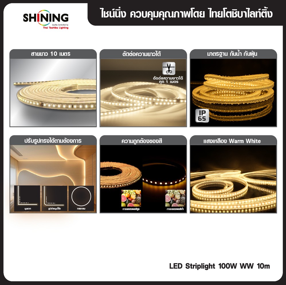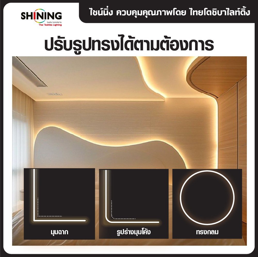 เพิ่มความสว่างไสวให้บ้านดูมีมิติ ด้วยไฟเส้น จาก SHINING สามารถติดได้ทุกที่ใช้งานได้หลากหลาย ขนาด 100 วัตต์ สว่างมากเป็นพิเศษ แต่ประหยัดไฟ ลำแสงไม่มีความร้อน ให้ความสวยงาม และสร้างบรรยากาศใหม่ๆ ได้อีกด้วย