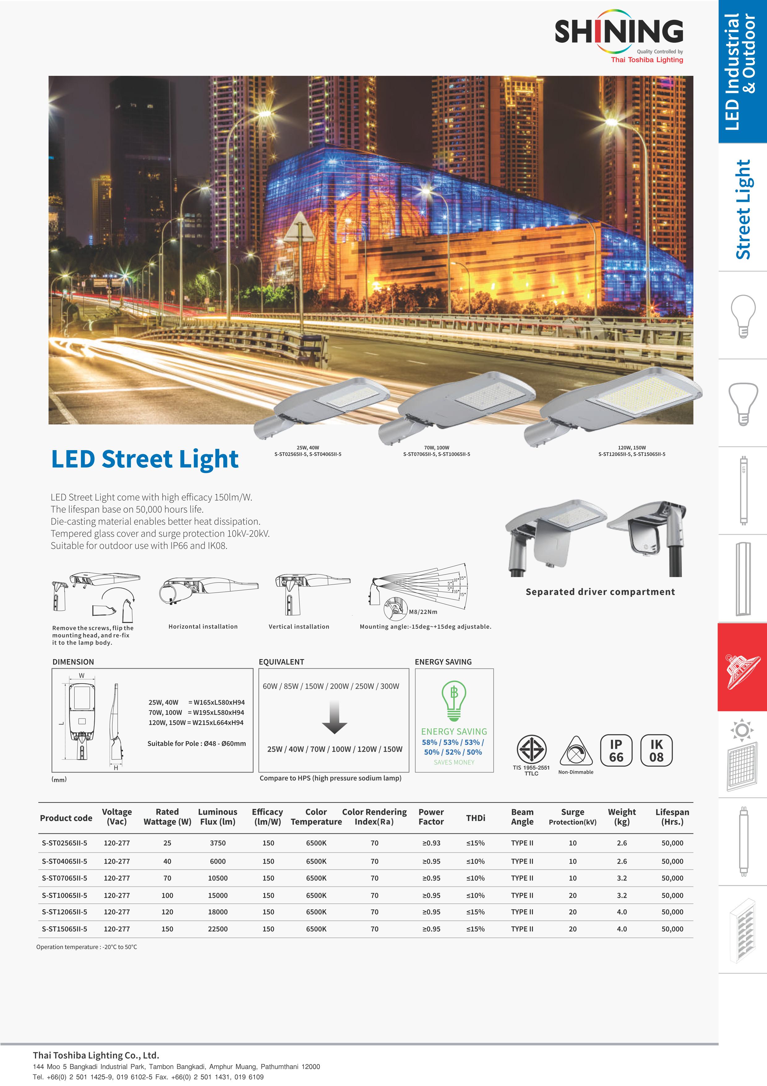 หมวดหมู่ : Shining ,  LED Industrial & Outdoor ,  LED Street Light ,  Water & Dust Protection (IP Rating) ,  IP66 ,